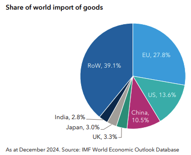 And internal demand in Europe is not insignificant. In fact, it is the largest single market importer globally, accounting for more than twice the proportion of imports as the US. This puts it in a relatively strong position to not only stimulate domestic demand and strengthen the businesses that serve it, but also to enhance its leverage in negotiating trade agreements with other countries.