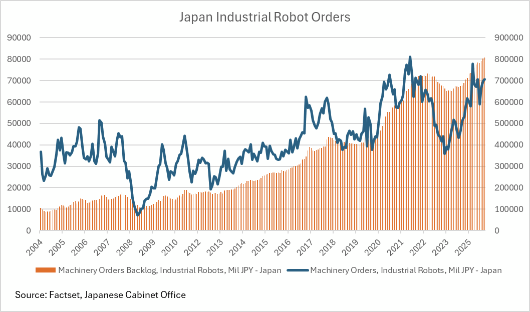 President Trump visited Japan just a few weeks after Takaichi Sanae’s elevation to PM. Japan extended a warm welcome and in return Trump confirmed closer economic and security ties (as well as acting as a booster for Takaichi during her campaign). We have written previously around how the US/Japan relationship is mutually beneficial, matching Japanese manufacturing know-how with the US drive to rebuild their manufacturing base and boosting economic growth for both countries.