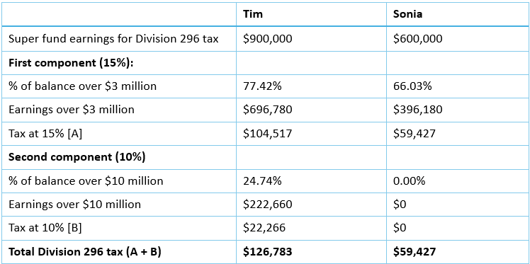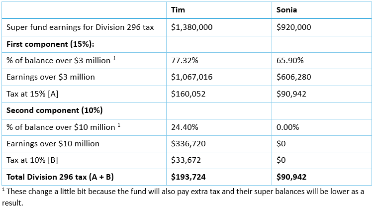 Step 2: Divide the fund’s ‘Div 296 earnings’ between the two of them.